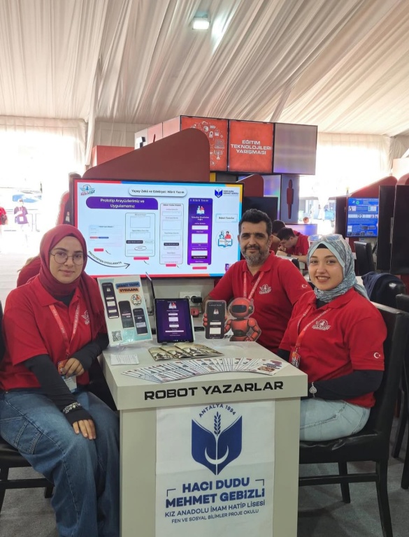 Antalya'dan TEKNOFEST 2025 finallerine katılan Robot Yazarlar takımı, geliştirdikleri "Hibrit Yazılım"projesi ile ilk 10 arasına girerek büyük başarı elde etti. Öğrencilerimiz Belinay Beşken, Ayşegül Ünar ile danışman öğretmenimiz Tekin Kaya'yı tebrik ediyor başarılarının devamını diliyoruz.